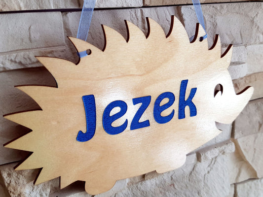 Personalized wooden plaque kids bedroom or pet name sign hedgehog squirel bear bird natural wood