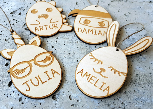 4 Wooden Easter basket tags personalized ornaments wood crafts decoration Easter name pendants kids decor