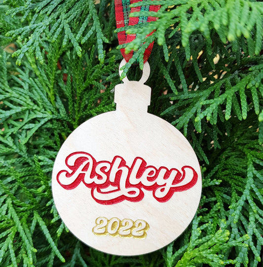 Personalized wooden bauble hand painted any name laser cut first Christmas ornament gift